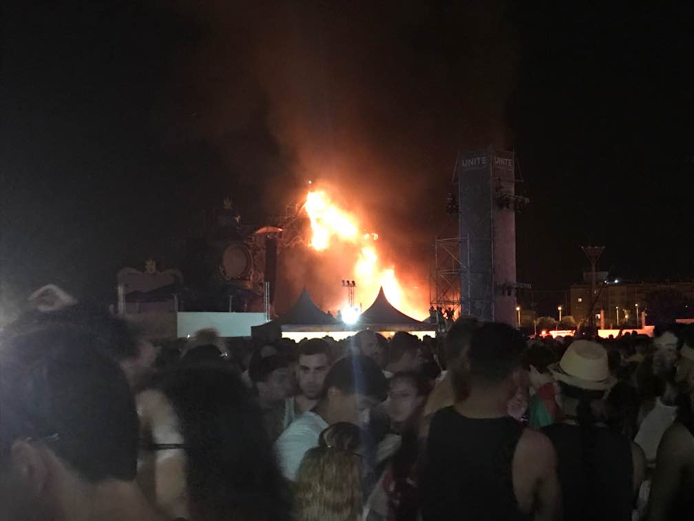 Video y Fotos del incendio en el escenario principal de Tomorrowland en Santa Coloma de Gramenet, Barcelona #unitewithtomorrowland